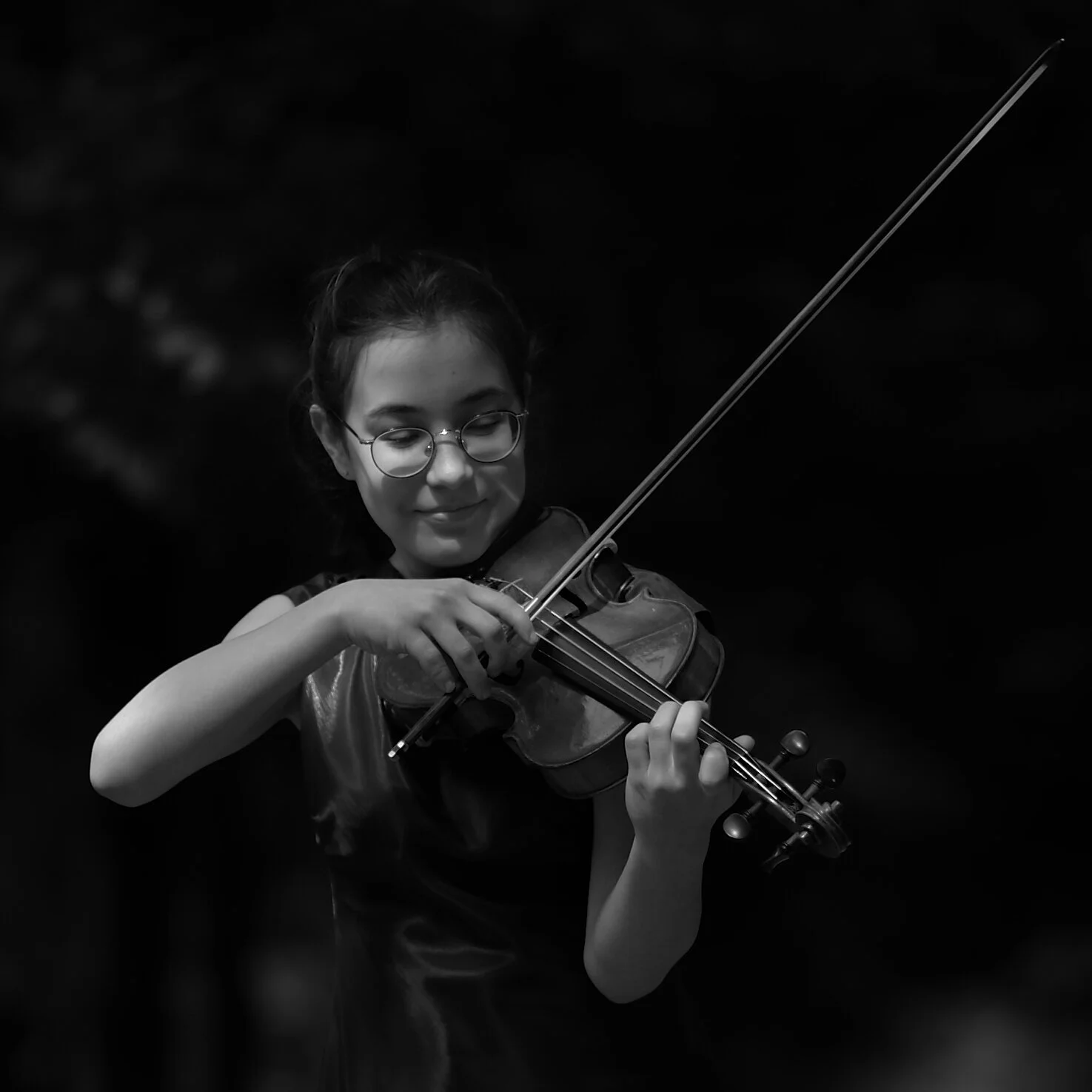 Kira van der Woerd (2005) kreeg haar eerste vioolles toen ze drieënhalf was. Ze begon met Suzuki, maar ging na een jaar naar haar huidige docente, Julia Dinerstein.